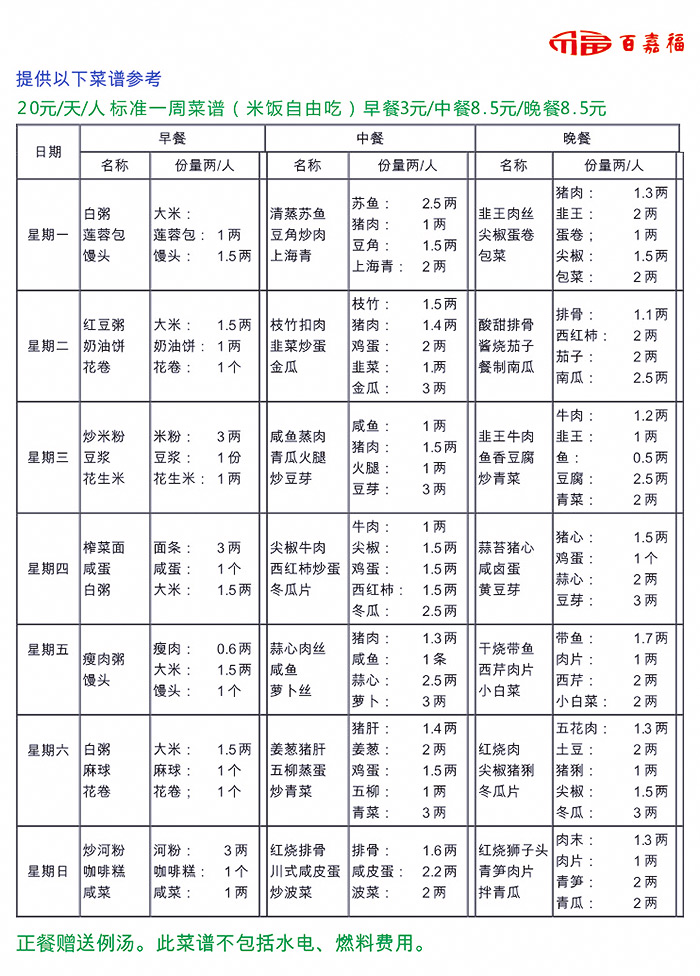 百嘉福标准菜谱一